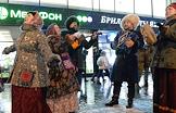 Фестиваль "Дни Дальнего Востока в Москве". Дальневосточная ярмарка на Новом Арбате. Артисты фольклорного коллектива после церемонии открытия ярмарки.