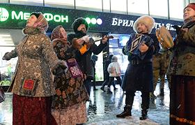 Фестиваль "Дни Дальнего Востока в Москве". Дальневосточная ярмарка на Новом Арбате. Выступление артистов фольклорного коллектива во время церемонии открытия ярмарки.