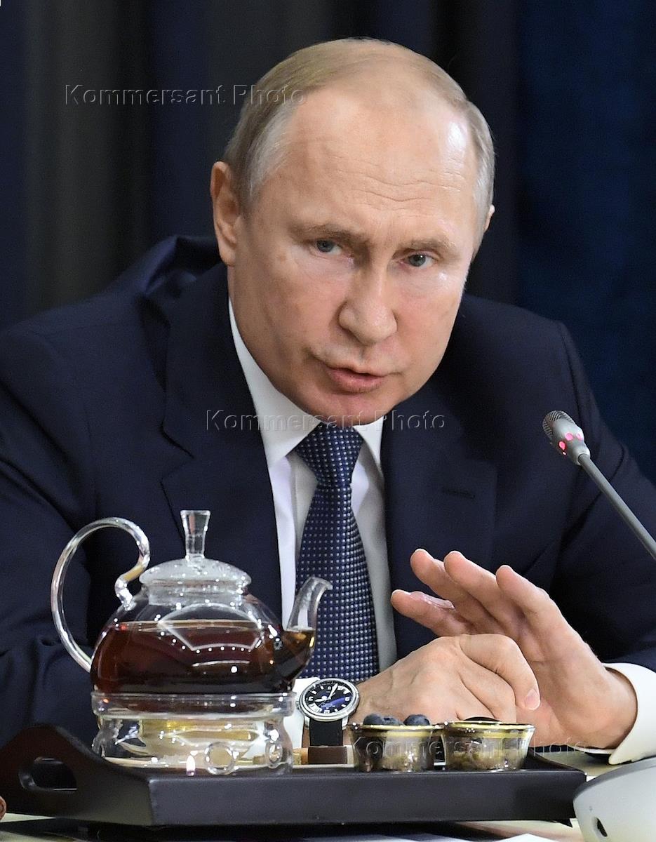 Рабочая поездка президента России Владимира Путина в Сочи. Встреча президента России Владимира Путина с представителями деловых кругов Германии в резиденции Бочаров Ручей.