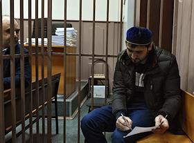 Обвиняемый по делу об убийстве начальника центра "Э" МВД по Ингушетии Ибрагима Эльджаркиева З.Х. Полонкоев (слева) во время заседания Басманного районного суда.