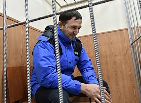 Обвиняемый по делу об убийстве начальника центра "Э" МВД по Ингушетии Ибрагима Эльджаркиева А. М. Белхароев перед началом заседания Басманного районного суда.