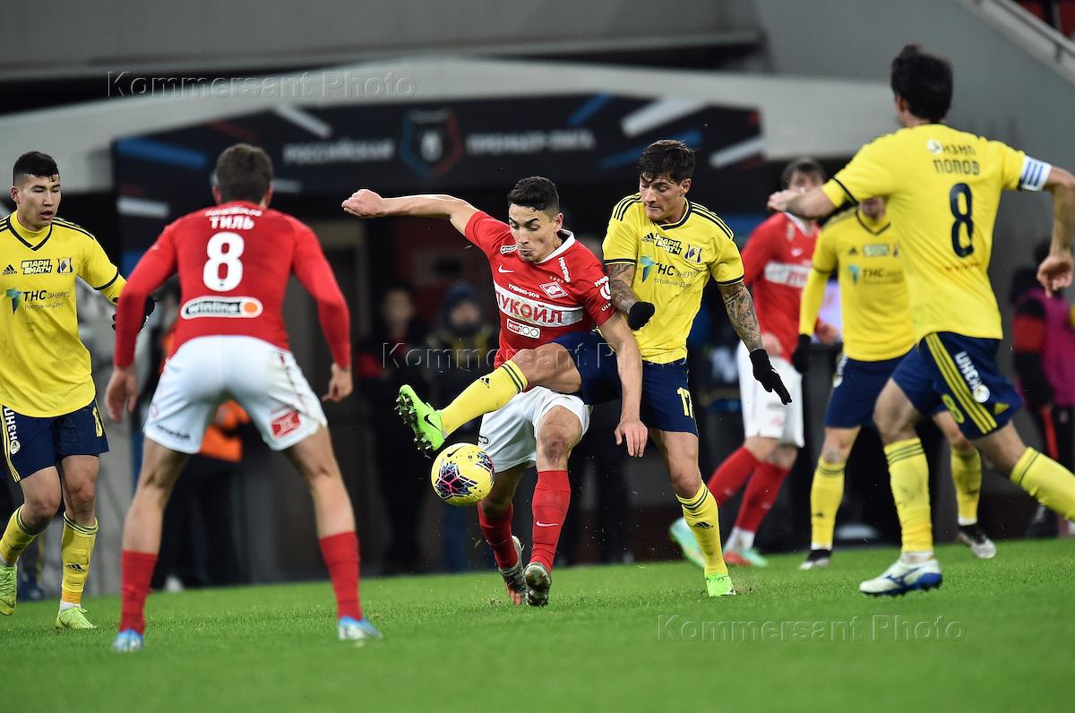 Российская Премьер-лига (РПЛ). 19-й тур РПЛ. Матч между командами "Спартак" (Москва) - "Ростов" (Ростов-на-Дону) на стадионе "Открытие Арена". Игрок команды "Спартак" Резиуан Мирзов (в центре) во время матча.