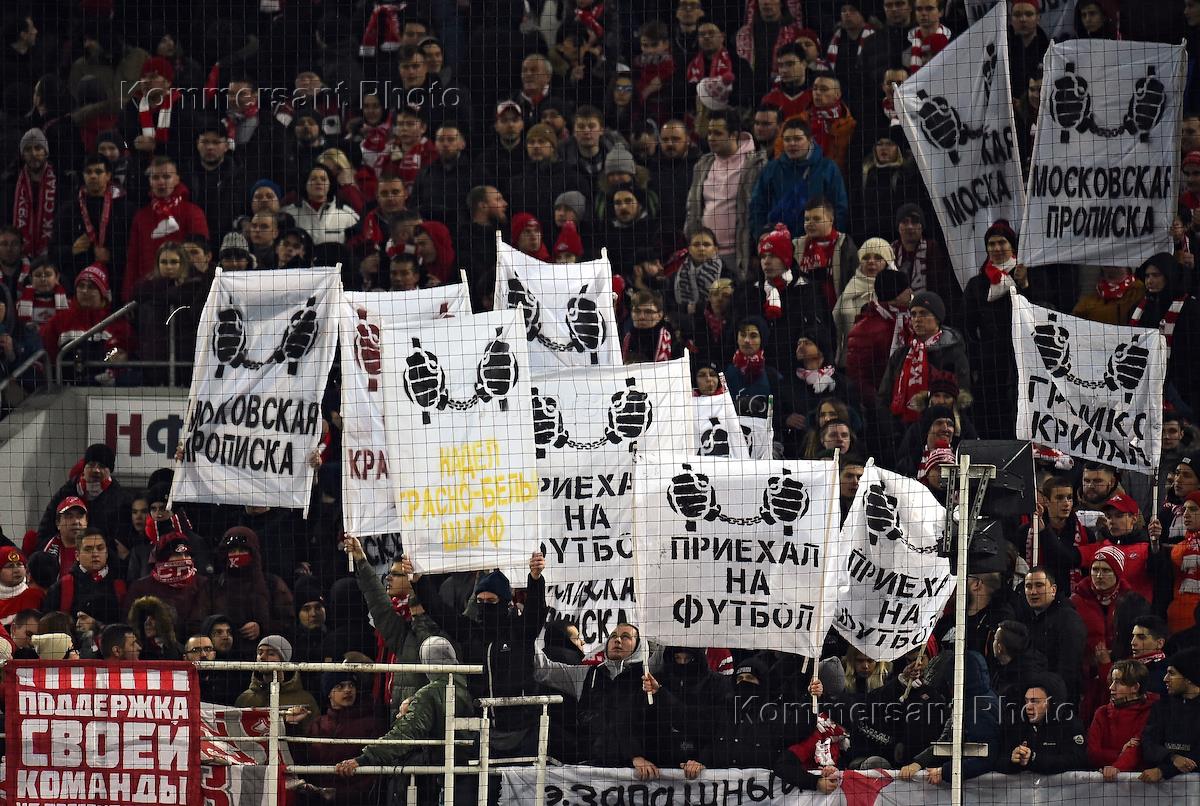 Российская Премьер-лига (РПЛ). 19-й тур РПЛ. Матч между командами "Спартак" (Москва) - "Ростов" (Ростов-на-Дону) на стадионе "Открытие Арена". Болельщики на зрительской трибуне во время матча.