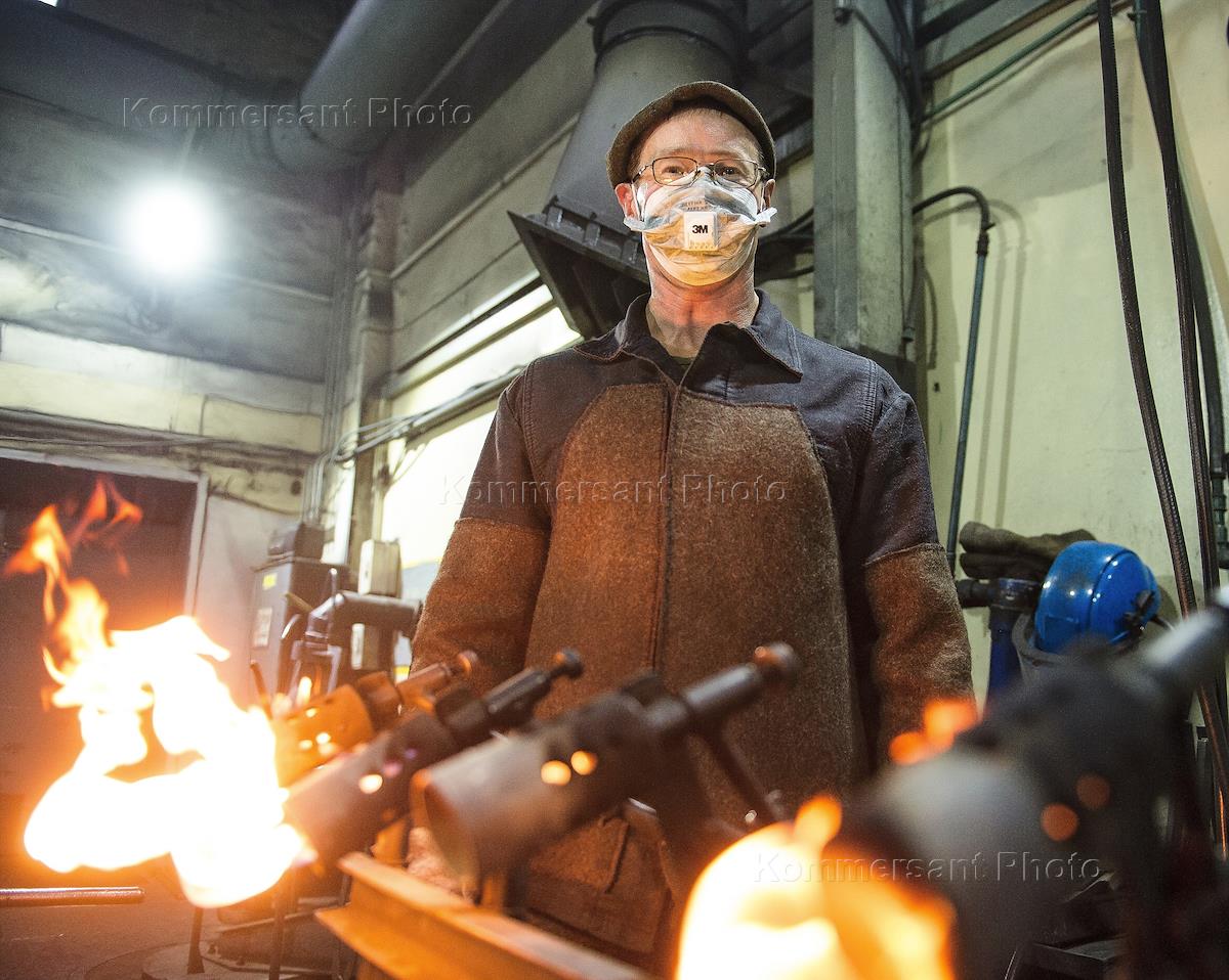 Предприятие "Новосибирский аффинажный завод". Работа предприятия. Аффинажное производство. Сотрудник завода в цехе у печи.
