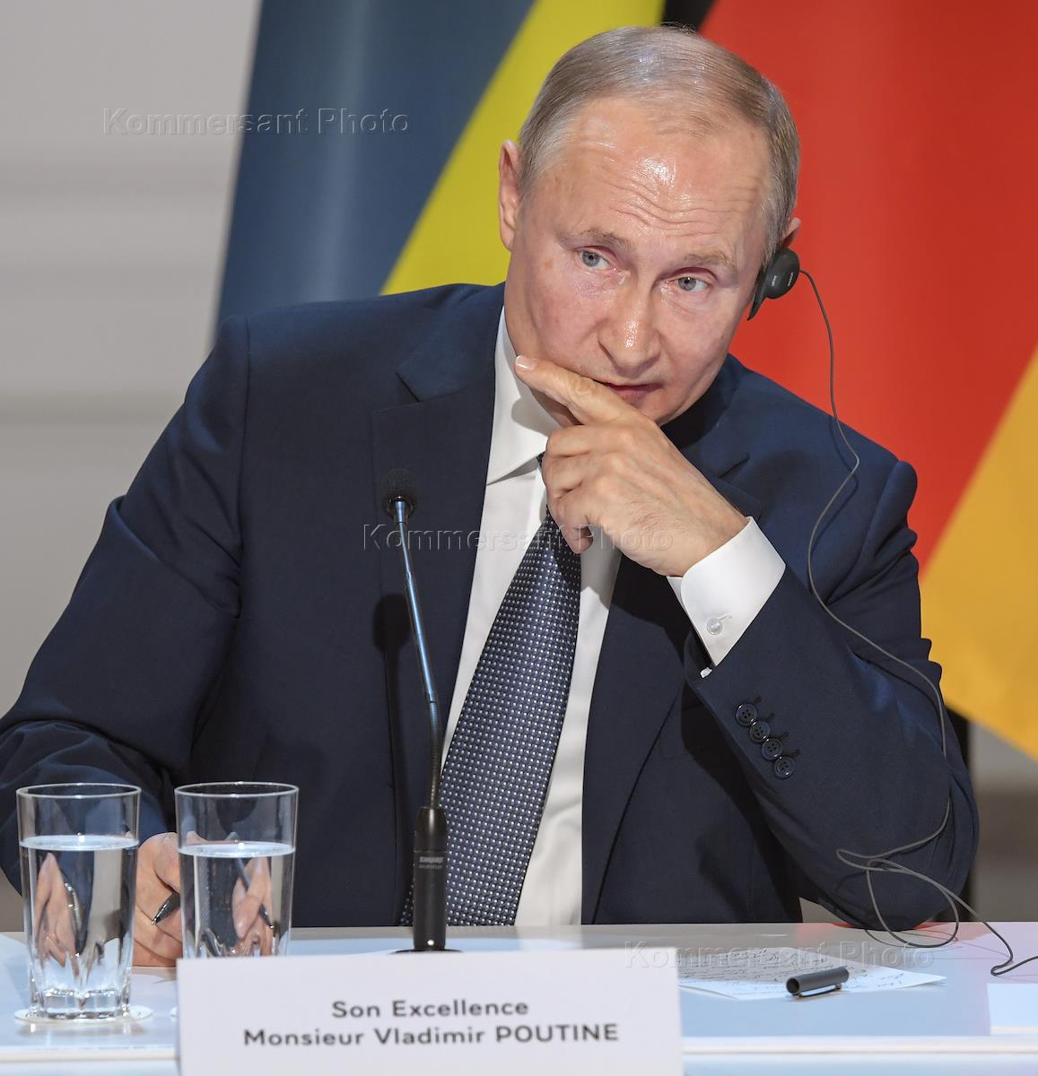 Рабочая поездка президента России Владимира Путина в Париж. Саммит в "нормандском формате" в Елисейском дворце. Президент России Владимир Путин во время церемонии встречи.