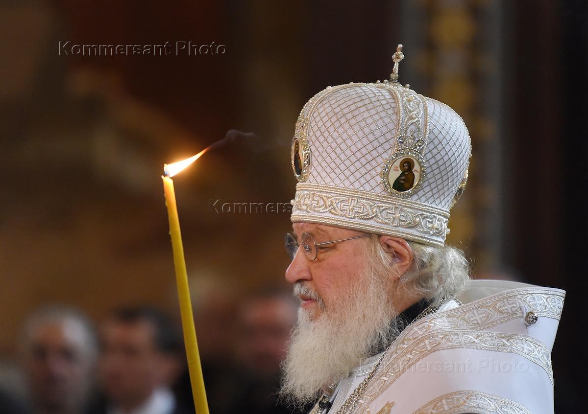 Церемония отпевания бывшего мэра Москвы Юрия Лужкова в кафедральном соборном Храме Христа Спасителя. Патриарх Московский и всея Руси Кирилл во время церемонии.