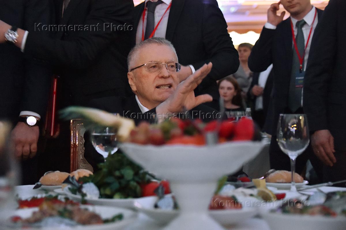 Торжественные мероприятия, посвященные 30-летнему юбилею Либерально-демократической партии России (ЛДПР), в Государственном Кремлевском Дворце. Лидер ЛДПР Владимир Жириновский (в центре) во время мероприятий.