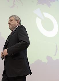 XXI cъезд партии "Яблоко" в зале Научно-методического центра профсоюзов работников агропромышленного комплекса (АПК) России в городе Московский в Новой Москве. Председатель федерального политкомитета партии "Яблоко" Григорий Явлинский во время съезда.