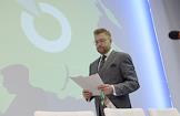 XXI cъезд партии "Яблоко" в зале Научно-методического центра профсоюзов работников агропромышленного комплекса (АПК) России в городе Московский в Новой Москве. Заместитель председателя партии "Яблоко", кандидат на должность председателя партии Николай Рыбаков во время съезда.