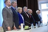 XXI cъезд партии "Яблоко" в зале Научно-методического центра профсоюзов работников агропромышленного комплекса (АПК) России в городе Московский в Новой Москве. Слева направо: заместитель председателя партии "Яблоко", кандидат на должность председателя партии Николай Рыбаков, заместитель председателя партии "Яблоко" Сергей Иваненко, председатель партии "Яблоко" Эмилия Слабунова, председатель федерального политкомитета партии "Яблоко" Григорий Явлинский, координатор Федерального политического комитета партии Борис Мисник и заместитель председателя "Яблока" Александр Гнездилов во время съезда.