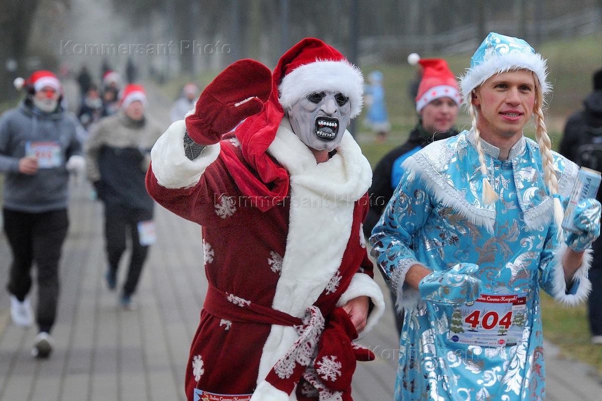 Традиционный забег и заплыв Санта-Клаусов на Комсомольском озере.