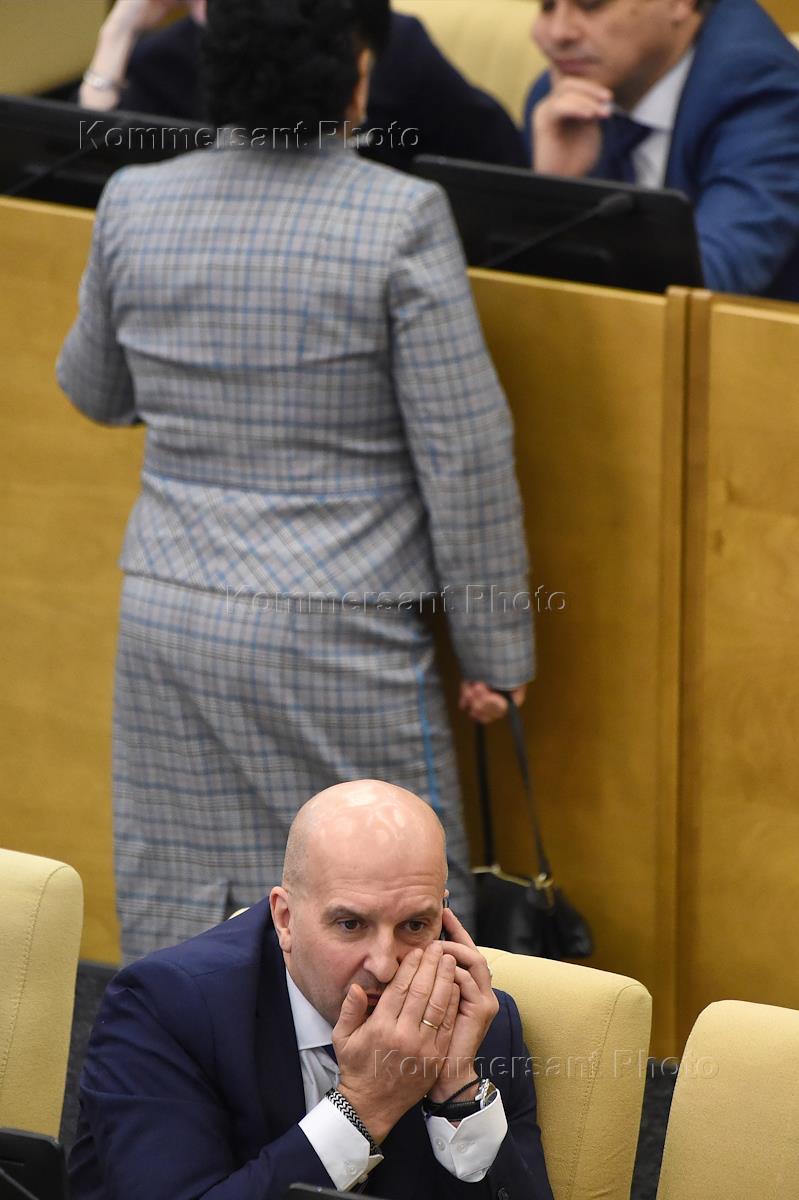 Пленарное заседание Государственной думы (ГД) России. Член комитета ГД по образованию и науке Николай Земцов перед началом заседания.