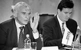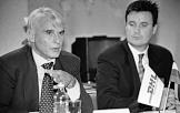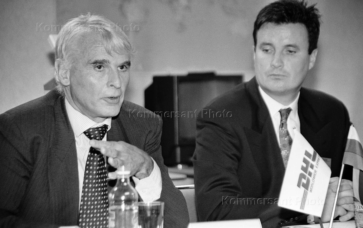 Генеральный директор компании DHL Кристоф Вичич (слева) во время пресс-конференции.