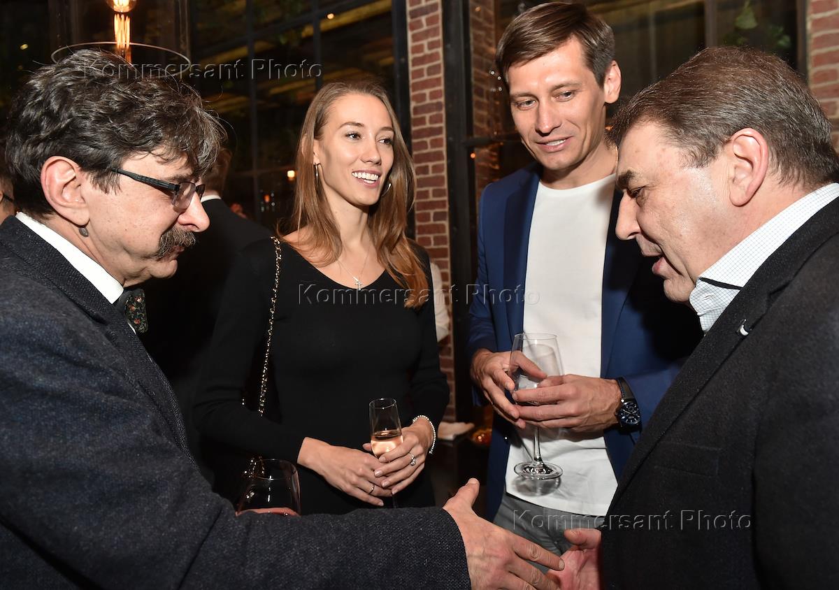 Празднование дня рождения главного редактора радиостанции "Эхо Москвы" Алексея Венедиктова в ресторане "Шинок". Первый заместитель главного редкатора радиостанции "Эхо Москвы" Сергей Бунтман (слева), председатель партии "Партия перемен" Дмитрий Гудков (второй справа), его супруга Валерия (вторая слева) и лидер партии "Гражданская инициатива" Андрей Нечаев (справа) во время празднования.