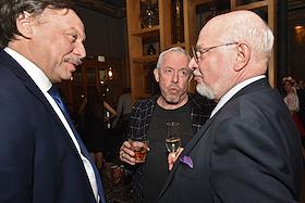 Празднование дня рождения главного редактора радиостанции "Эхо Москвы" Алексея Венедиктова в ресторане "Шинок". Слева направо: полномочный представитель Правительства России в высших судебных инстанциях Михаил Барщевский, музыкант Андрей Макаревич и юрист, политик, правозащитник Михаил Федотов во время празднования.