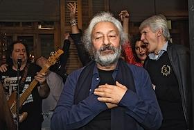 Празднование дня рождения главного редактора радиостанции "Эхо Москвы" Алексея Венедиктова в ресторане "Шинок". Выступление музыкальной группы на праздновании.