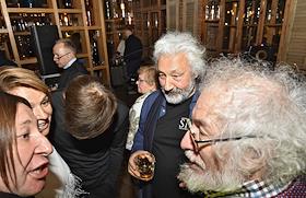Празднование дня рождения главного редактора радиостанции "Эхо Москвы" Алексея Венедиктова в ресторане "Шинок". Слева направо: главный редактор радиостанции "Эхо Москвы" Алексей Венедиктов, писатель Виктор Ерофеев и композитор, музыкальный продюсер Стас Намин во время празднования.