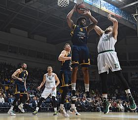 Euroleague Basketball. Match between Khimki (Khimki, Russia) and Zalgiris (Kaunas, Lithuania) at the Mytishchi Arena sports complex. Khimki's Anthony Gill (center) during the match.