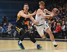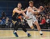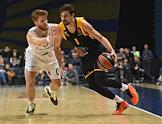 Euroleague Basketball. Match between Khimki (Khimki, Russia) and Zalgiris (Kaunas, Lithuania) at the Mytishchi Arena sports complex. Zalgiris' Thomas Walkup (right) and Khimki's Chris Kramer (left) during the match.