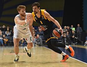 Euroleague Basketball. Match between Khimki (Khimki, Russia) and Zalgiris (Kaunas, Lithuania) at the Mytishchi Arena sports complex. Khimki's Alexey Shved (center) during the match.