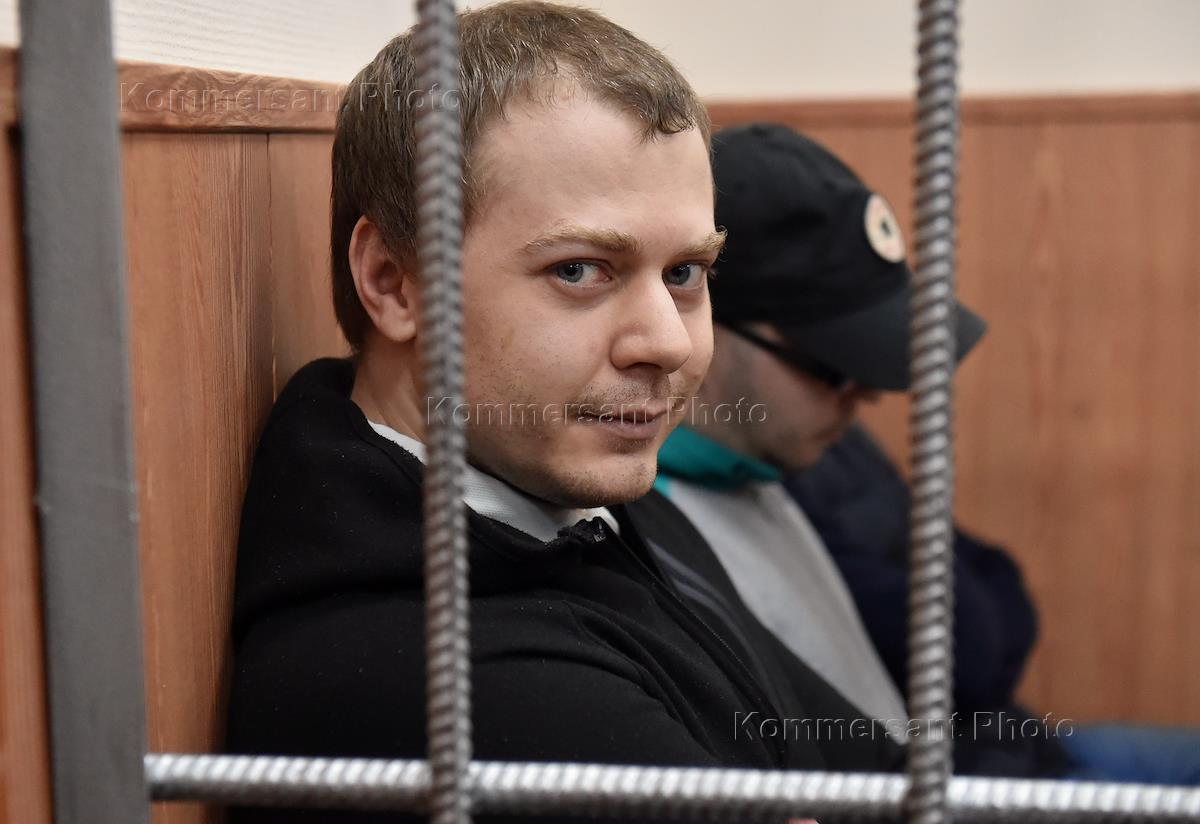 Хакеры, признанные виновными во взломе электронных систем РЖД и S7, Андрей Жданов, Кирилл Кулабухов и Максим Матюшев во время заседания Басманного районного суда.
