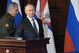 Расширенное заседание коллегии министерства обороны России. Слева направо: начальник Генерального штаба Вооруженных сил России — первый заместитель министра обороны России Валерий Герасимов, президент России Владимир Путин и министр обороны России Сергей Шойгу на заседании.