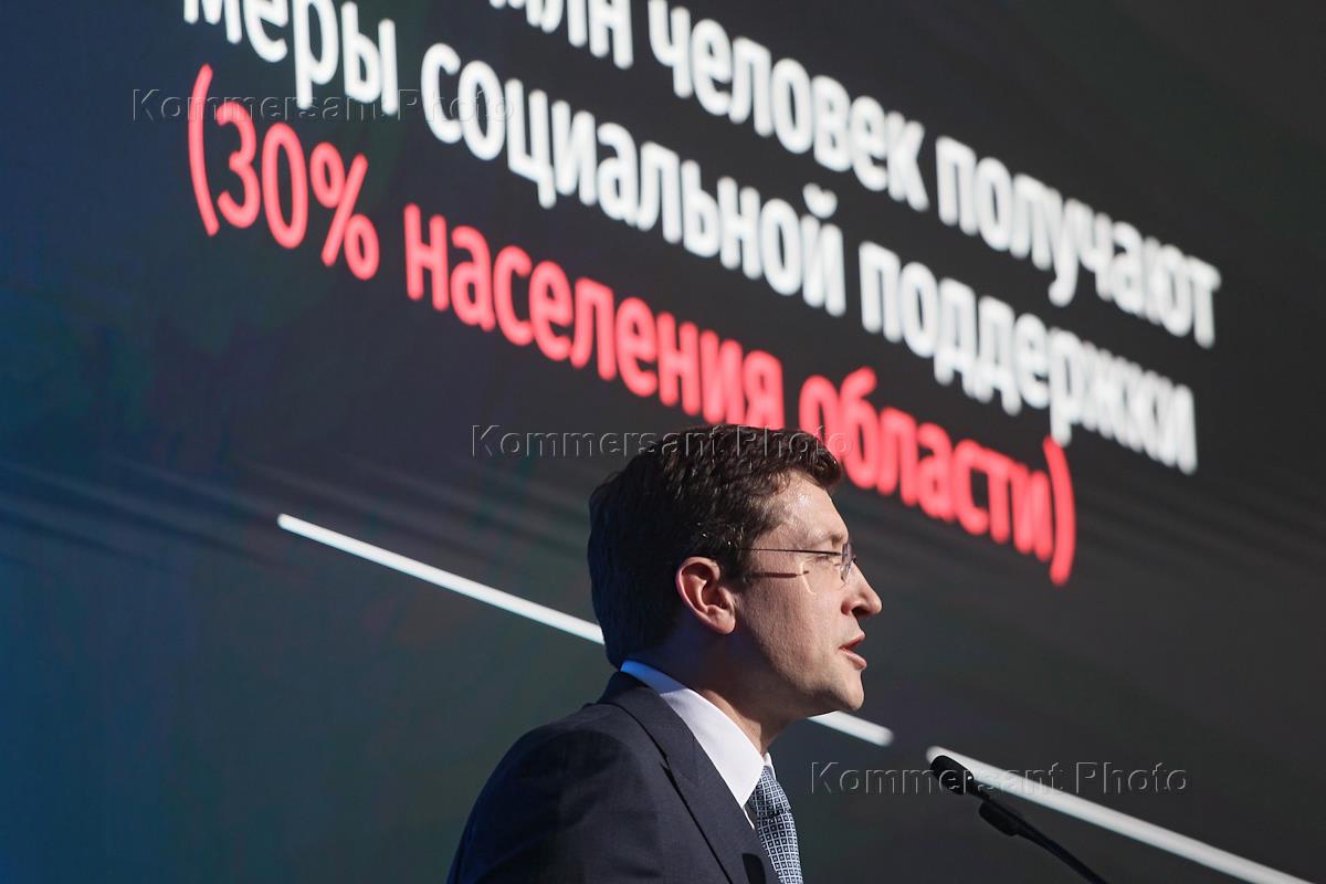 Губернатор Нижегородской области Глеб Никитин во время отчета об итогах 2019 года на Нижегородской ярмарке.