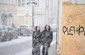 Виды Москвы во время снегопада.