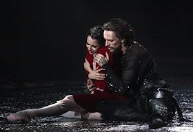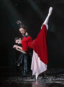 Мировая премьера проекта танцовщика Сергея Полунина балета "Красная Шапочка" в постановке английского хореографа Росса Фредди Рея на музыку Кирилла Рихтера прошла на сцене концертного зала "Зарядье". Балерина Лаура Фернандес-Громова (слева) и артист балета Сергей Полунин (справа) во время выступления.