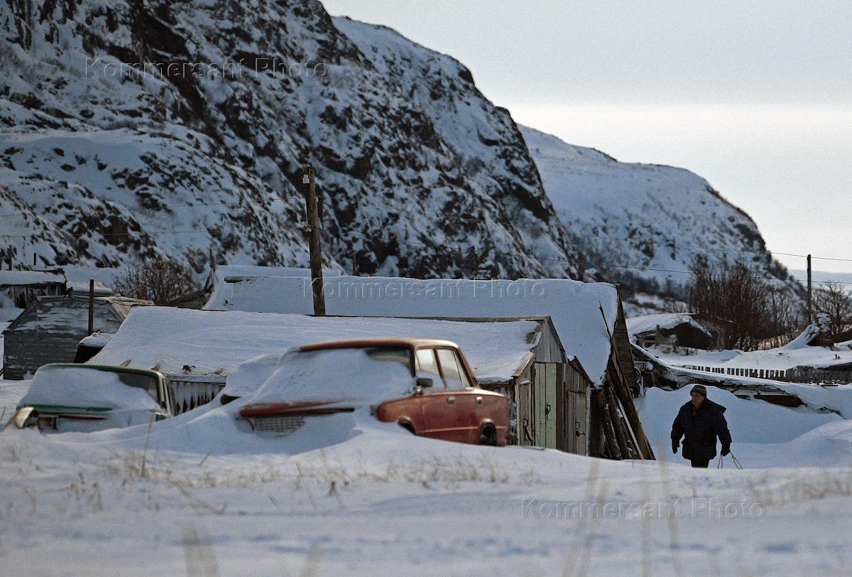 Китайский бизнес в Териберке. Жанровая фотография. Сотрудник коммунальных служб во время уборки снега.