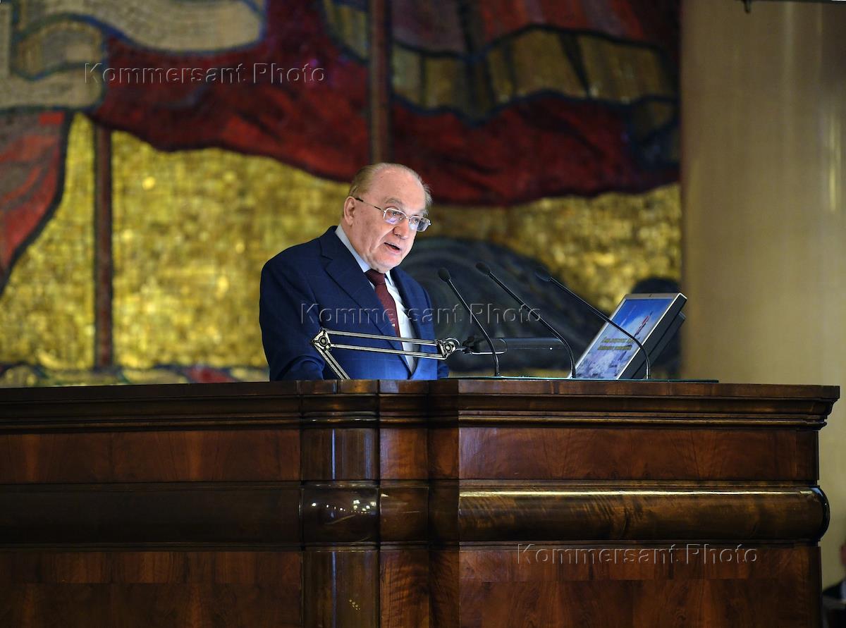 День открытых дверей в Московском государственном университете (МГУ) имени М.В. Ломоносова. Ректор МГУ имени М.В. Ломоносова Виктор Садовничий во время выступления в актовом зале главного здания МГУ.