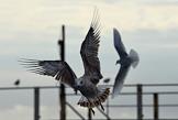 Жанровая фотография. Чайки сидят на столбиках ограждения пирса.