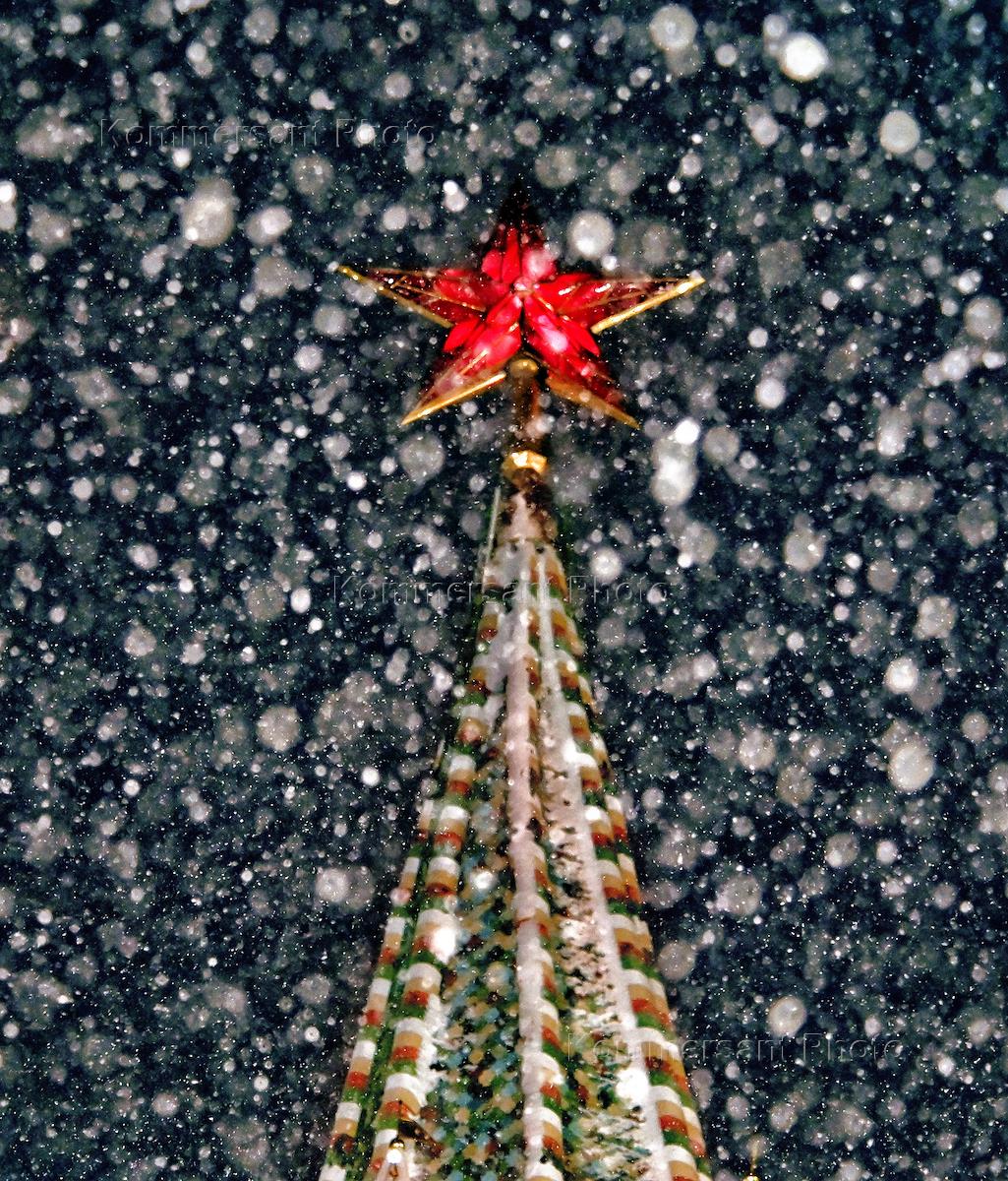 Жанровая фотография. Снегопад в Москве. Рубиновая звезда на башне Кремля.