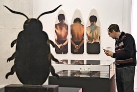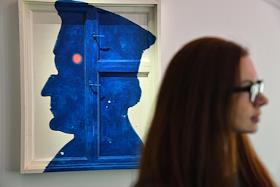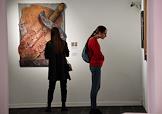 Юбилейная выставка "MMOMA 99/19", приуроченная к ХХ-летию Московского музея современного искусства (ММОМА). Посетители на выставке.