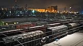 Виды ночного Мурманска. Грузовые составы на железной дороге.