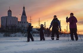 Виды Мурманска. Жанровая фотография. Семья во время лыжной прогулки.