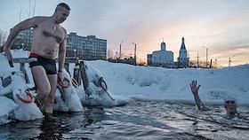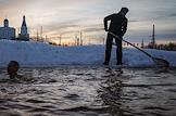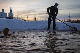 Виды Мурманска. Жанровая фотография. Купание в проруби.