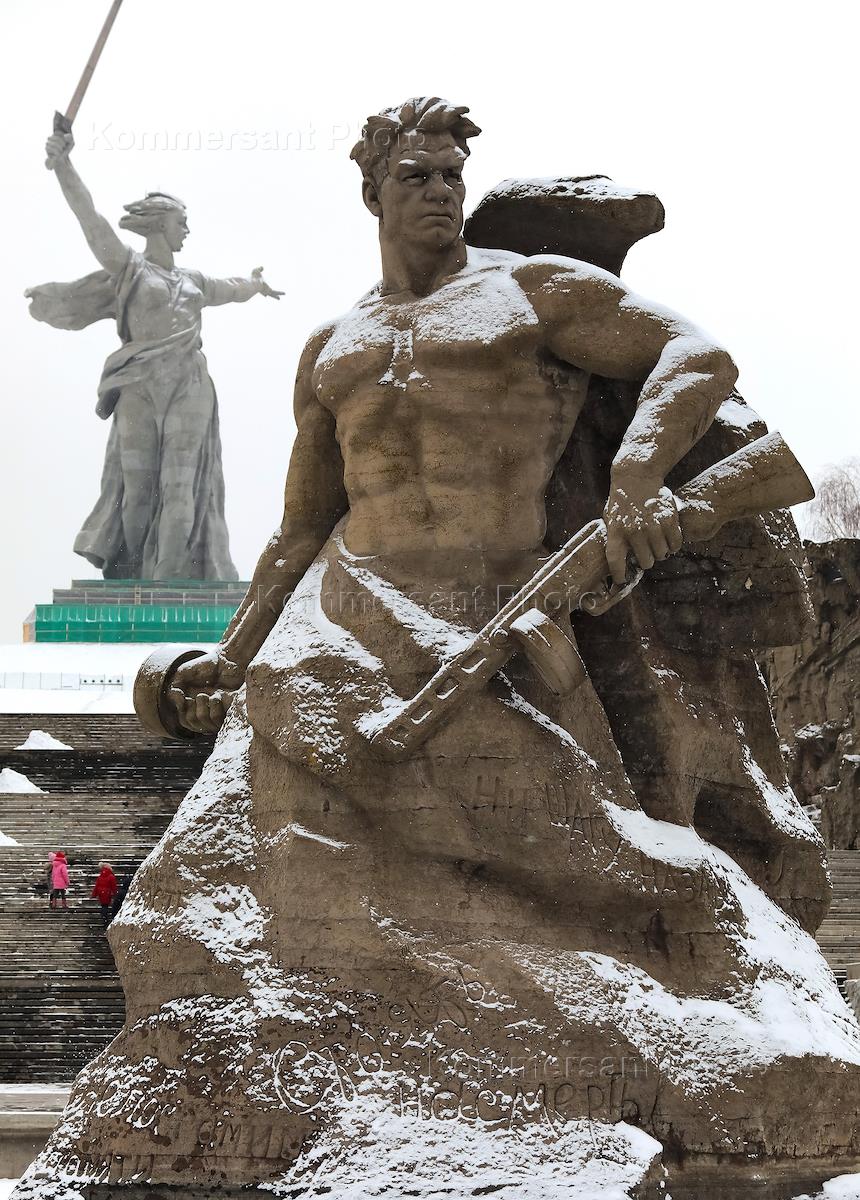 Виды Волгограда. Монумент "Родина-мать зовет!" на территории историко-мемориального комплекса "Мамаев курган" после реставрации. Реконструкция стилобата.