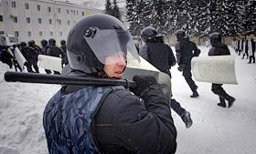Бойцы Росгвардии во время учений по пресечению массовых беспорядков.