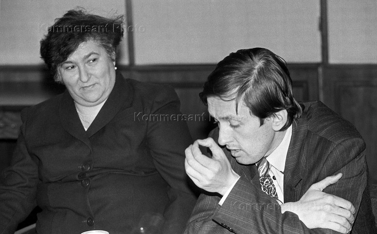 Встреча представителей коммерческих банков. Руководитель Департамента ценных бумаг Министерства финансов России Белла Златкис (слева) и депутат Государственной думы России Александр Починок (справа) во время встречи.