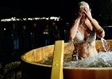Праздник Крещения Господня. Крещенские купания в саду имени Баумана. Девушка по время купания.