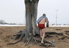 Праздник Крещения Господня. Губернатор Нижегородской области Глеб Никитин во время крещенских купаний на озере Щелоковского хутора.