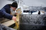 Праздник Крещения Господня в исправительной колонии № 3. Священнослужитель во время обряда освящения купели для крещенских купаний.
