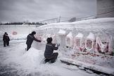 Праздник Крещения Господня в исправительной колонии № 3. Очистка плаката "С новым годом" от снега.