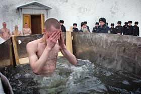 Праздник Крещения Господня в исправительной колонии № 3. Верующие в купели во время крещенских купаний.