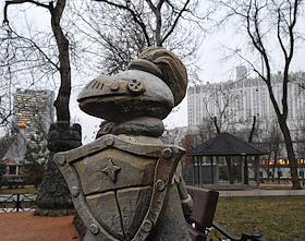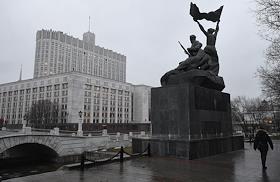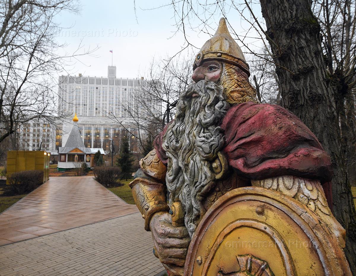 Виды Москвы. Здание Дома правительства России. Скульптуры в парке.