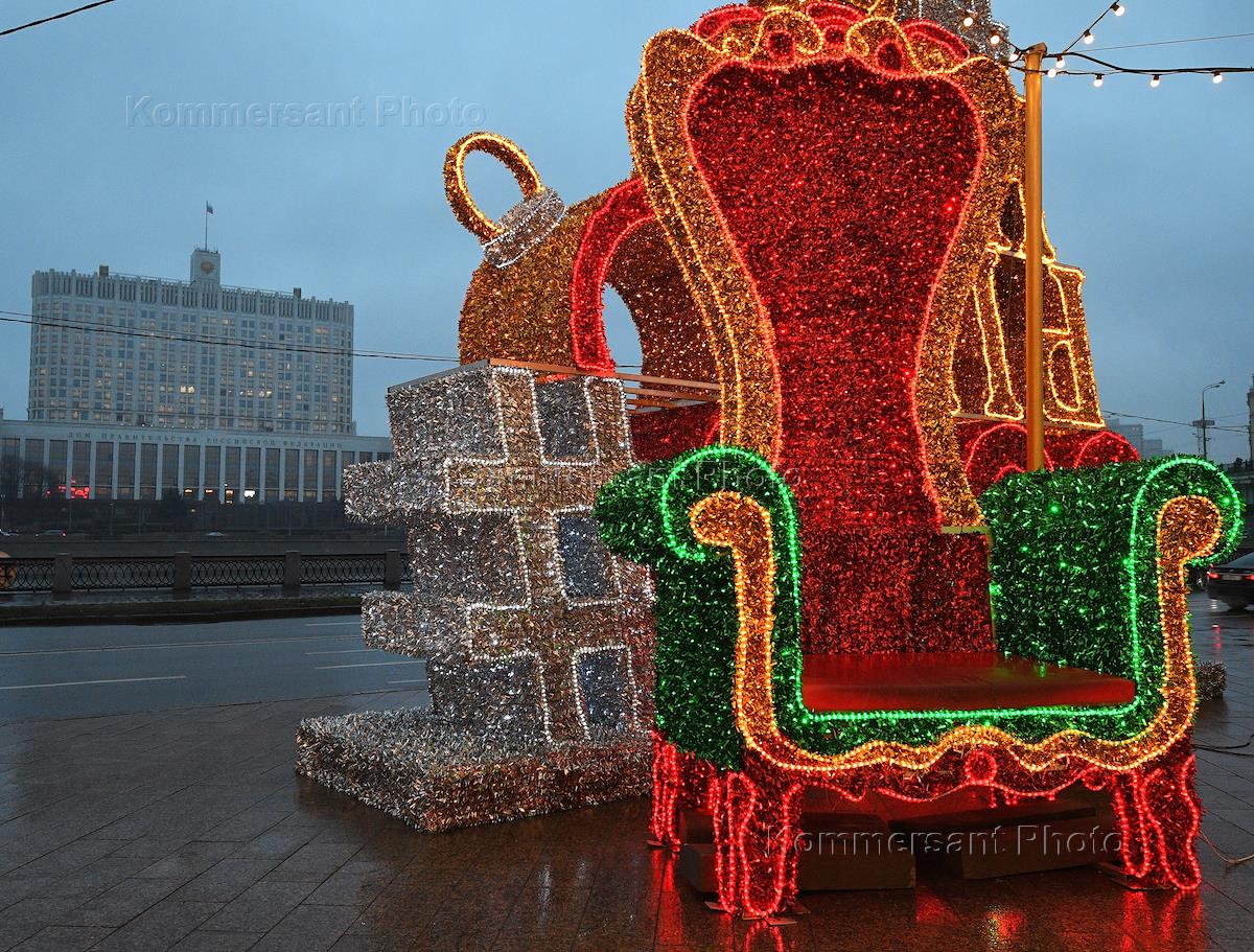 Виды Москвы. Здание Дома правительства России. Новогодняя иллюминация.
