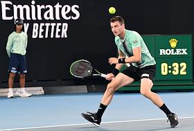 Теннисный турнир Australian Open - 2020. День четвертый. Испанский теннисист Педро Мартинес во время матча с российским теннисистом Даниилом Медведевым.