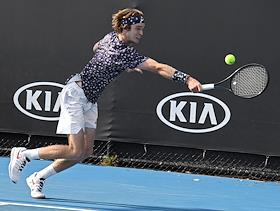 Теннисный турнир Australian Open. День четвертый. Российский теннисист Андрей Рублев во время матча против японского теннисиста Юити Сугита.