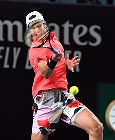 Теннисный турнир Australian Open. День четвертый. Шведский теннисист Микаэль Имер во время матча против российского теннисиста Карена Хачанова.